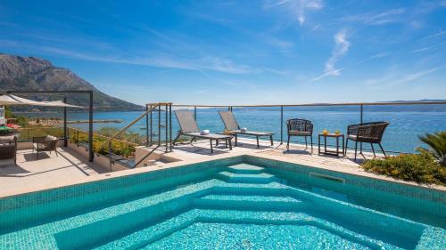 Located in Duće, Luxury beachfront VILLA FLORES heated outdoor, indoor pool, whirlpool, sauna offers a balcony with sea and mountain views, as well as a seasonal outdoor pool, sauna and fitness room.