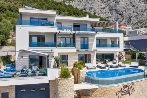 Die Unterkunft Villa Afrodita mit Bergblick in Makarska bietet Übernachtungsmöglichkeiten mit einem saisonalen Außenpool, einem Fitnesscenter, einem Garten, einer Gemeinschaftslounge und einer Terrasse.