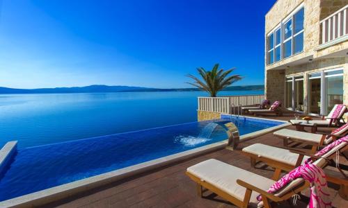 Gelegen in Kapetan stan, bietet die Unterkunft Villa CaMa eine Terrasse mit Meerblick und Bergblick sowie einen saisonalen Außenpool, eine Sauna und einen Whirlpool.