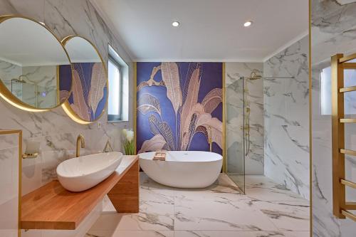 Mit einem Außenpool, einem Garten und einer Terrasse bietet die Unterkunft Villa Naya with Heated Pool and Hot Tub Übernachtungsmöglichkeiten in Veprinac mit kostenlosem WLAN und Stadtblick.